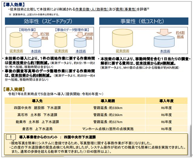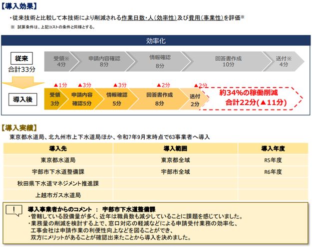 水道事業者及び下水道管理者等の皆様におかれましては、導入検討の際の参考としていただけますと幸いです。 今後とも業務の高度化や効率化等のサポートができるよう、引続き取り組んでまいります。