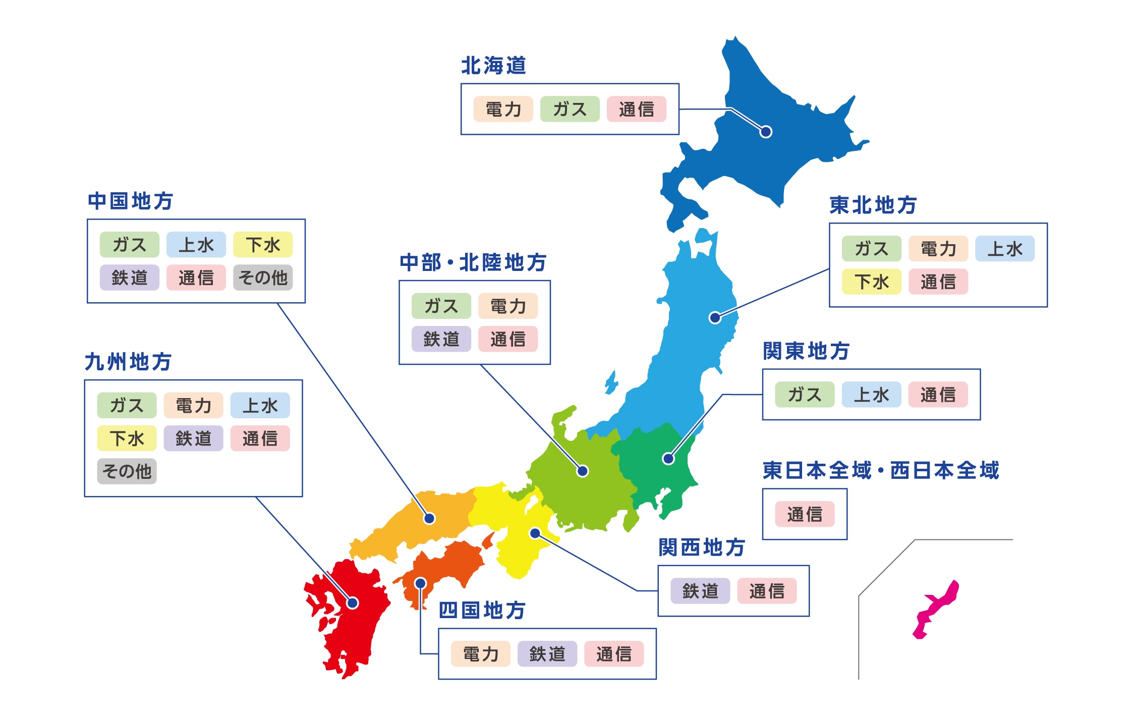 鉄道など近接施工協議、不動産取引に必要なライフライン確認受付(不動産照会)/自動回答、工事受付後の立会業務管理といった多彩なニーズにも対応しております。